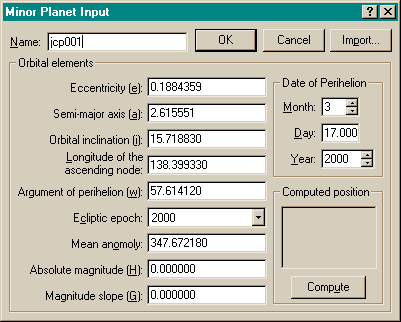 Elément orbitaux de l'astéroide (THE_SKY):