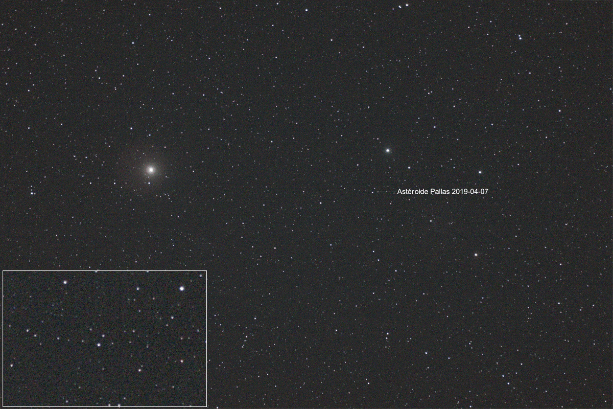 L'astéroide Pallas dans la constellation du Bouvier, le 7 avril 2019.