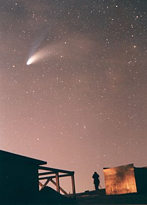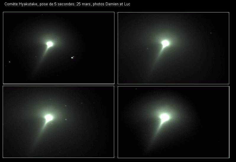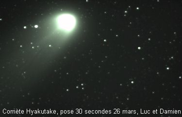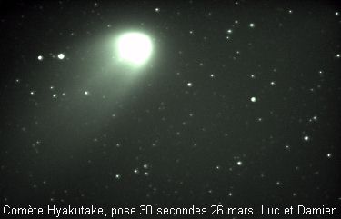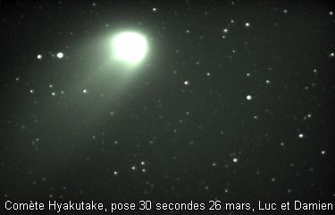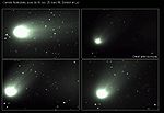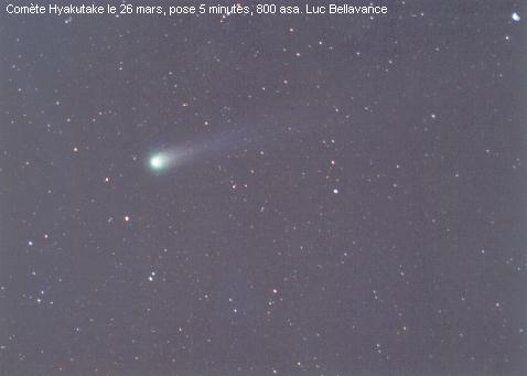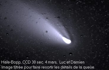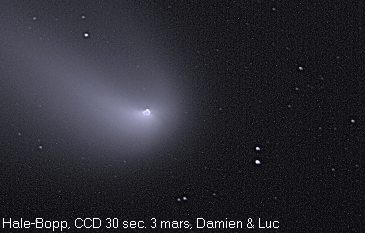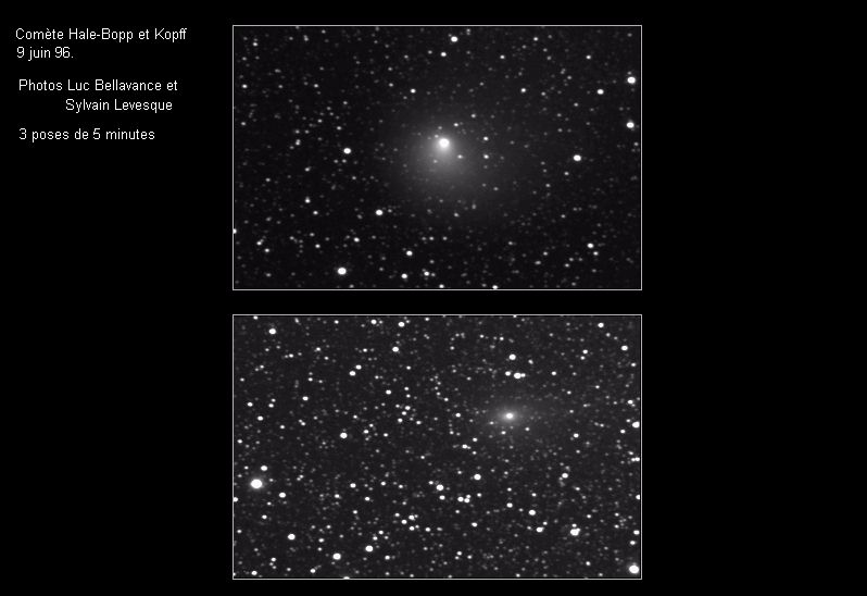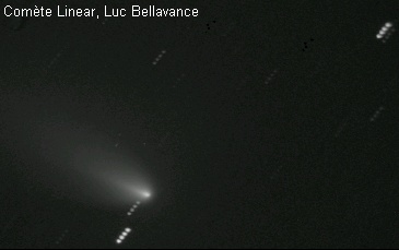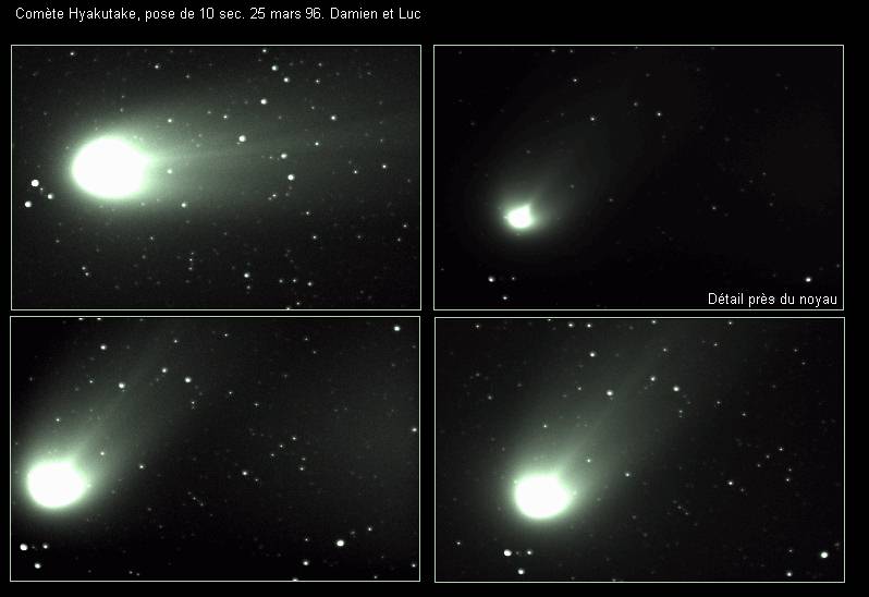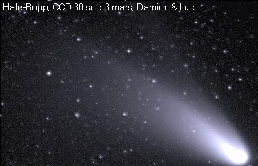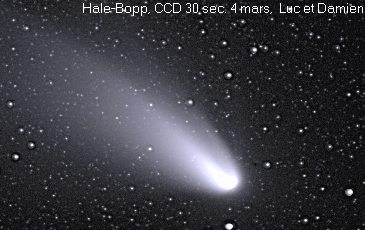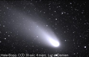 Les comètes sont d'énormes boules de neige sale essentiellement composées d'eau, de méthane, de neige carbonique, d'ammoniaques et d'autres matériaux volatils. Elles peuvent avoir entre 1 et 60 kilomètres de diamètre On distingue 3 sections composant une comète soient: le noyau, le coma ou chevelure et finalement la queue.