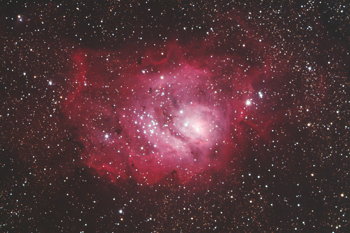 M8 nébuleuse dans le Sagittaire.. Lunette 80mm William Optics ave Canon 500D défiltré, 24 poses de 2 minutes.
